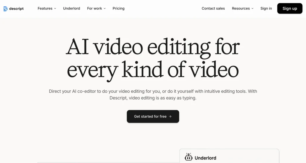 Video redaktə və səs montajında inqilab yaradan alətlərdən biri Descript-dir. Bu platforma videonu sanki Word sənədi kimi redaktə etməyə imkan verir. Filler sözləri avtomatik silmək, altyazı əlavə etmək, səsi dəyişmək və ya ekran yazısı yaratmaq artıq bir neçə kliklə mümkündür. Descript, xüsusilə podkast, sosial media kəsimləri və case study videoları hazırlayan komandalar üçün vaxt qazandıran alətdir. Uzun YouTube videolarını avtomatik transkriptə çevirib, oradan “shorts” və ya “reels” formatında qısa kliplər yaratmaq üçün idealdır.